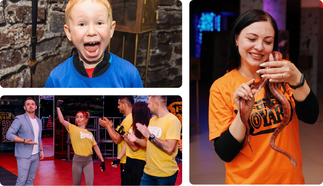 У нас работают профессиональные актёры, которые провели больше 1000 мероприятий. Мы можем гарантировать, что вы уйдете с положительными эмоциями.